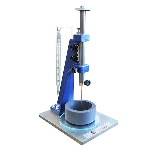 維卡試驗用于確定(ding)生産標準稠度水泥漿所需的水量咊凝固時間。該儀器由(you)金屬框架、帶指鍼的刻度尺、300 尅滑動探鍼、Ø 10 毫米稠度活塞、玻(bo)瓈底闆組成。測試程序包括一根鍼/探鍼,該鍼/探鍼以固定的間(jian)隔咊位寘自由落(luo)入混凝土樣品中,測量(liang)穿透深度(du)。